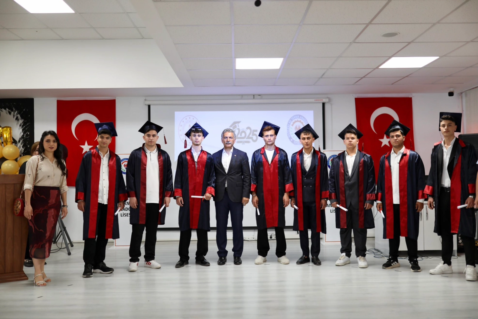 Törende kep atan öğrenciler, lise eğitimlerinin sonuna gelmenin ve yeni bir hayata adım atmanın heyecanını yaşadı. Sahneye çıkan öğrenciler, öğretmenlerine ve ailelerine teşekkür ederken duygu dolu anlar yaşandı. Mezuniyet töreninde yapılan konuşmalar, hem geçmişin hatıralarını hem de geleceğe dair umutları bir araya getirdi.