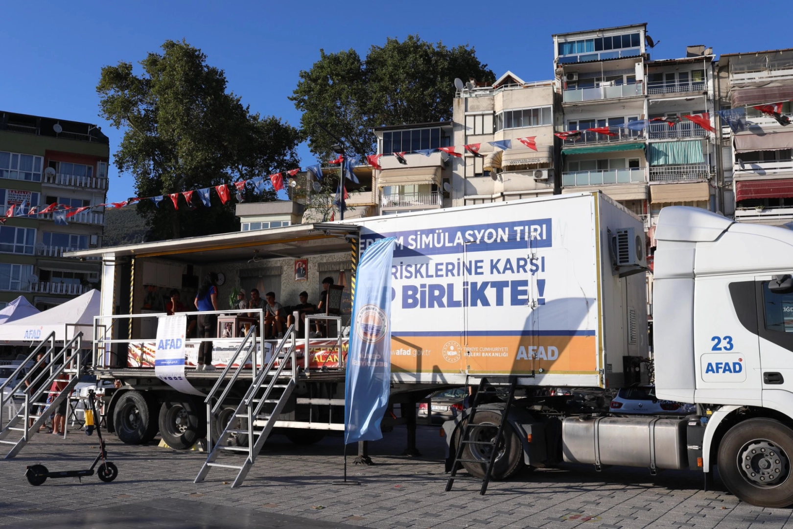 Gerçek bir deprem anının sarsıntılarını birebir deneyimleme imkânı sunan mobil eğitim aracı, Gemliklilere unutulmaz ve öğretici anlar yaşattı.