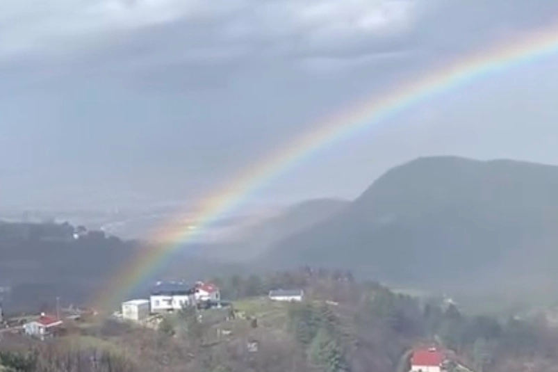 Bursa'nın Kestel ilçesine bağlı Saitabat Mahallesi'nde yağmurun ardından oluşan gökkuşağı, görenleri hayran bıraktı. Bursa genelinde etkili olan yağışlı havanın ardından Saitabat'ta bulutların arasından yüzünü gösteren güneşle birlikte gökyüzünde beliren gökkuşağı, doğayla iç içe manzarasıyla kartpostallık görüntüler oluşturdu. Yağmur sonrası temizlenen hava ve yeşilin her tonunu barındıran Saitabat vadisi üzerinde oluşan gökkuşağı, vatandaşlara keyifli anlar yaşattı. O anlara tanıklık eden vatandaşlar, gökkuşağını cep telefonlarıyla görüntülerken, kısa süre etkili olan doğa olayı çevrede görsel bir şölen sundu. Gökyüzünde beliren gökkuşağı, bir süre sonra yavaş yavaş kayboldu. Yağmurun ardından ortaya çıkan bu manzara, Bursa'nın Kestel ilçesindeki Saitabat'ta baharın güzelliğini bir kez daha gözler önüne serdi.