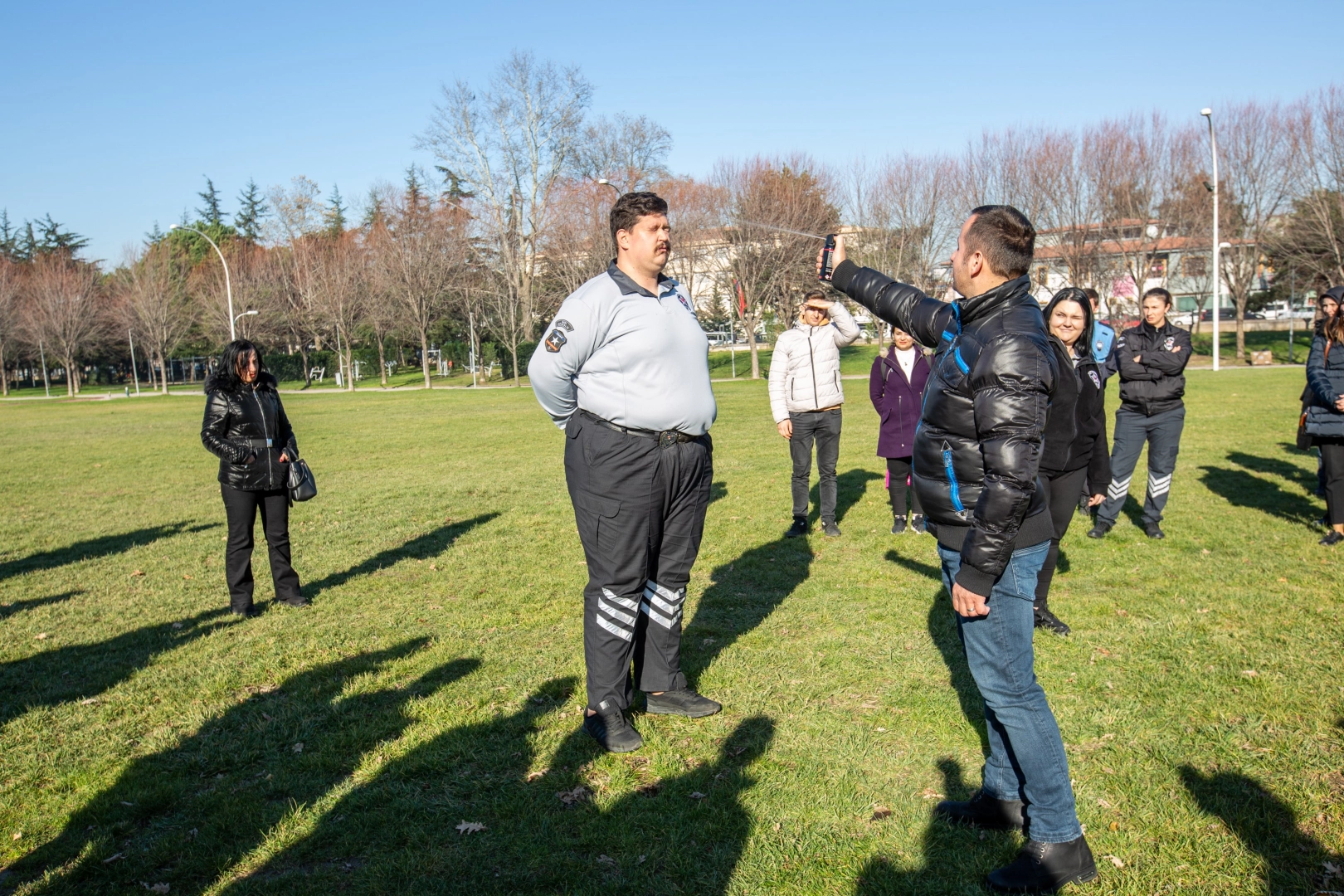 Bursa Büyükşehir Belediyesi’nin açık ve kapalı hizmet alanlarında görevli özel güvenlik personeli, göz yaşartıcı spreyin etkilerini önce kendi gözlerinde hissetti.