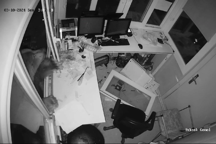 Uludağ’ın ormanlarında yiyecek bulamayan ayılar, insanların yaşadığı ortamlara inerek yiyecek aramaya devam ediyor. Güvenlik kameralarına yansıyan son görüntüler, Sarıalan Bölgesinde kayda alındı. 2 yavrusu ile birlikte yiyecek arayan ayı, önüne gelen ne varsa yıktı geçti. Yavrularını doyurmak için yiyecek bulmak zorunda olan yetişkin ayı, çöp konteynerlerinde bir şey bulamayınca, Macera Park'ın güvenlik kulübesine girmeye çalıştı. Gişenin camını zorlayarak indiren ayı, içeri giremeyince diğer camı da zorlayarak kırdı.