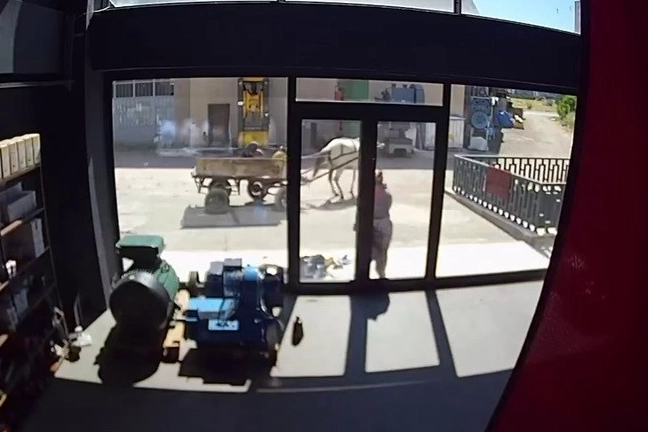 Bursa'da at arabası ile geldikleri dükkandan kablo çalan hırsızlar güvenlik kamerasına yansıdı. Hırsızların rahat tavırları dikkat çekti.