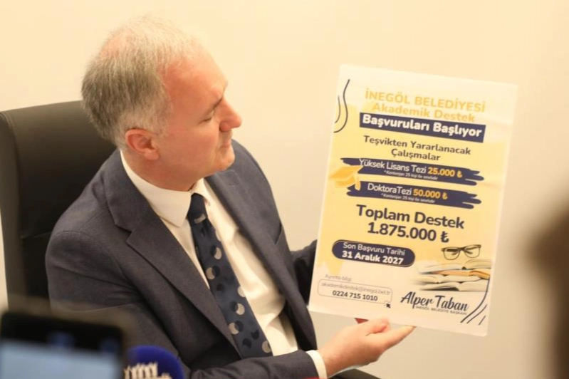 İnegöl Belediyesi’nin şehrin gelişimine akademik bir bakış açısı sunmak adına 2021 yılında başlattığı Akademik Destek Programı kapsamında, üçüncü dönem için kayıt süreci başladı. İlk iki dönemde İnegöl’e dair 5 doktora ve 10 yüksek lisans tezinin hazırlanmasını sağlayan Akademik Destek Programının yeni dönem duyurusu için bugün İnegöl Belediye binasında basın toplantısı düzenlendi. Belediye Başkanı Alper Taban ile birlikte Uludağ Üniversitesi İnegöl Meslek Yüksek Okulu Öğretim Görevlisi Dr. Cihad Doğan ve encümen üyelerinin hazır bulunduğu basın toplantısında, 07 Nisan 2026 ve 31 Aralık 2027 dönemini kapsayan Akademik Destek Programının detayları kamuoyu ile paylaşıldı.