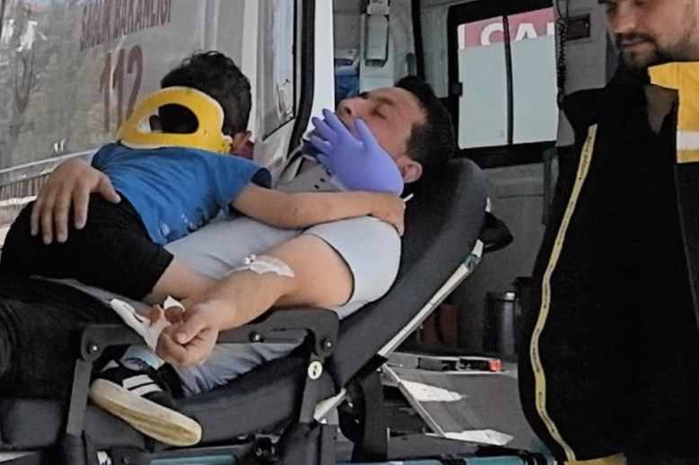 Sağlık ekipleri, müdahalenin ardından yaralı çocuğa muayene eldiveniyle balon yapıp verdi. Kaza, saat 16.00 sıralarında Kurşunlu Mahallesi yolu üzerinde meydana geldi. Sürücüsü ve plakası belirlenemeyen otomobil, yol üzerinde seyir halinde olan İmdat K. (44) idaresindeki 16 APL 816 plakalı motosiklete çarptı.
