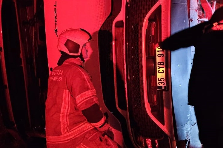 Kaza saat 05.30 sıralarında Bursa-Ankara karayolu üzeri İnegöl'ün Mezit-5 mevkiinde meydana geldi. Bozüyük istikametinden İnegöl'e seyir halinde olan Sürücü Saffet S.(33) yönetimindeki 35 CYB 918 plakalı patates yüklü TIR, sürücüsünün kontrolünden çıkarak yolun kenarına devrildi.