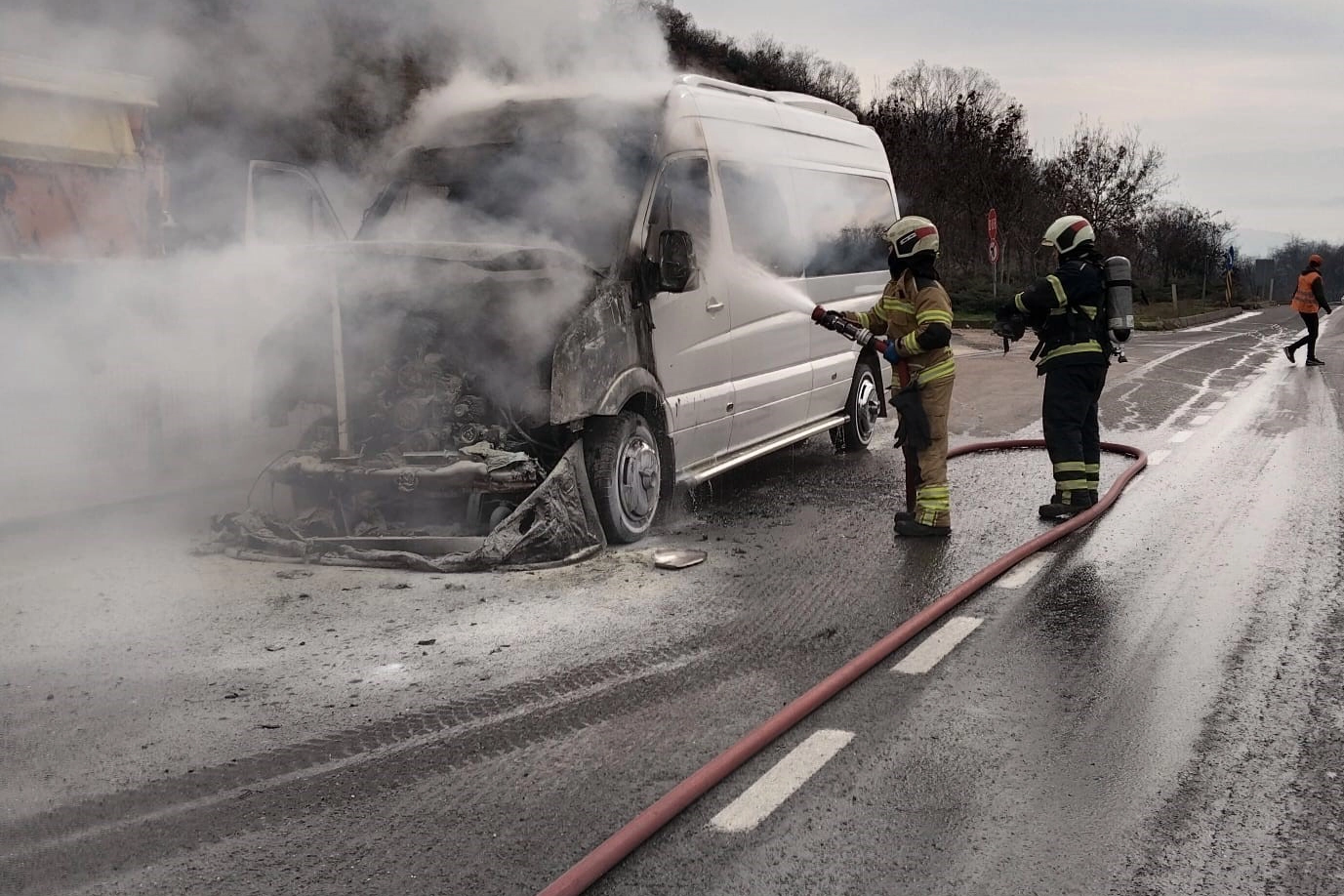 Bursa'nın İnegöl ilçesinde seyir halinde olan servis minibüsü yandı.