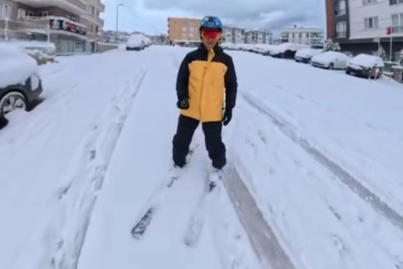 Kayak yaparken kendini kayda da alan vatandaş, karla kaplanan yollarda rahatlıkla ilerlediği anları sosyal medyada paylaştı. Görüntüler kısa sürede ilgi gördü.