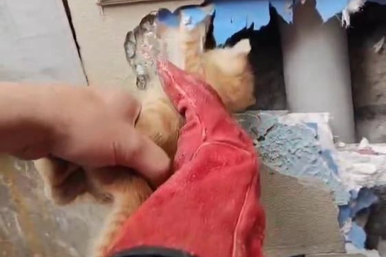 Merkez Nilüfer ilçesi Özlüce Mahallesi’nde bir evin duvarı içerisinde kedi sesleri duyan vatandaşlar durumu 112 Acil Çağrı Merkezi’ne bildirdi. İhbar üzerine Bursa Büyükşehir Belediyesi İtfaiye Daire Başkanlığı ekipleri harekete geçti. Ekipler, kedi sesinin geldiği duvarı balyoz yardımıyla kırdı. Yavru kedi, sıkıştığı yerden kurtarılarak annesinin yanına bırakıldı. O anlar anbean amatör kameraya yansıdı.