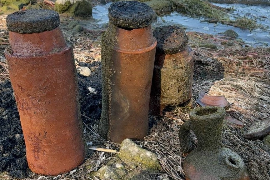 Polis ise ağzı kapalı olan üç küpü ve yanındaki tarihi kalıntıları müzeye teslim etti.