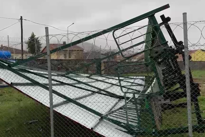 Sert esen rüzgârın etkisiyle misafir tribünü çöktü. Olay anında tribünde kimsenin bulunmaması, büyük bir facianın önüne geçti.