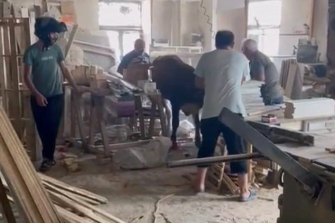 İnegöl ilçesinde sahibinin elinden kaçan kurbanlık inek, mobilya sanayini birbirine kattı.