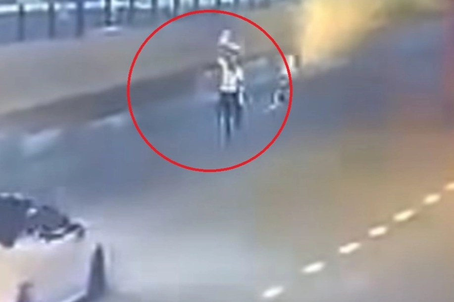 Kaçan aracı durdurmak için bir polis memuru ise refleksle yerden aldığı trafik dubasını araca fırlatarak aracın önünü kesmeye çalıştı. O anlar güvenlik kamerasına anbean yansıdı.