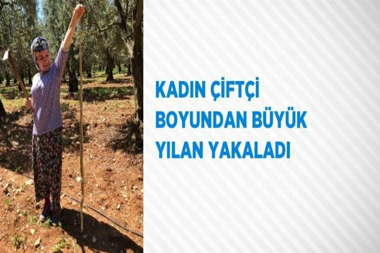 Bursa’nın İznik ilçesinde bir kadın çiftçi tarlasında boyundan büyük yılan yakaladı.