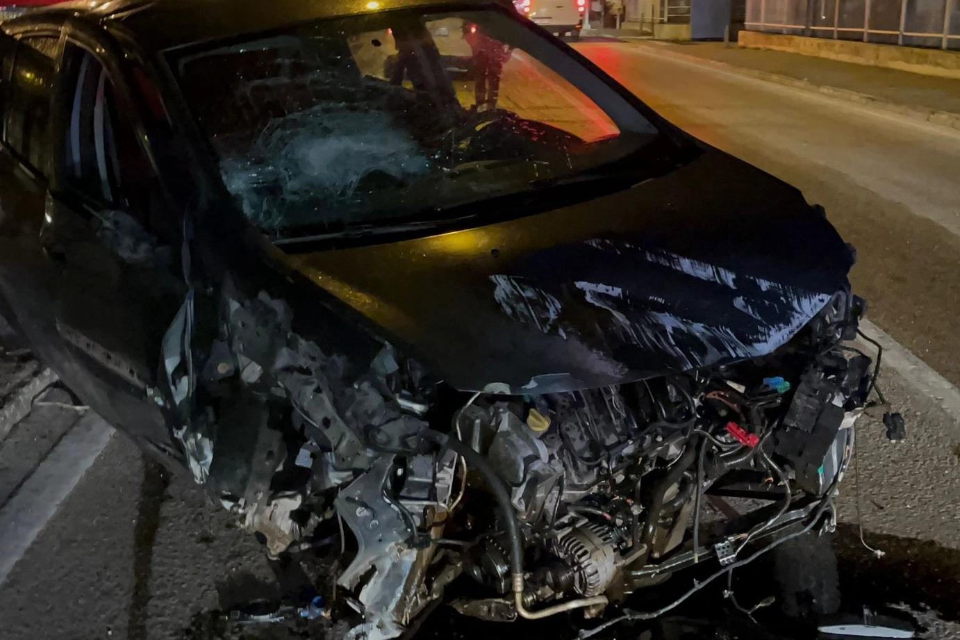 Bursa'da gizli buzlanma sebebiyle kontrolden çıkan otomobil önce kaldırıma, daha sonra ise demir bariyerlere çarptı.