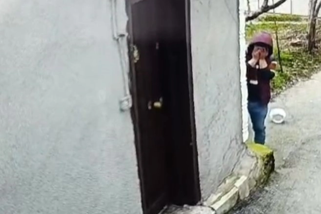 Bursa'da bir kapkaççı, pazar alışverişinden dönen yaşlı kadının çantasını çalmak için takip ederken, geçtiği sokakta güvenlik kamerasını görünce, elleriyle yüzünü kapatıp saklambaç oynadı.