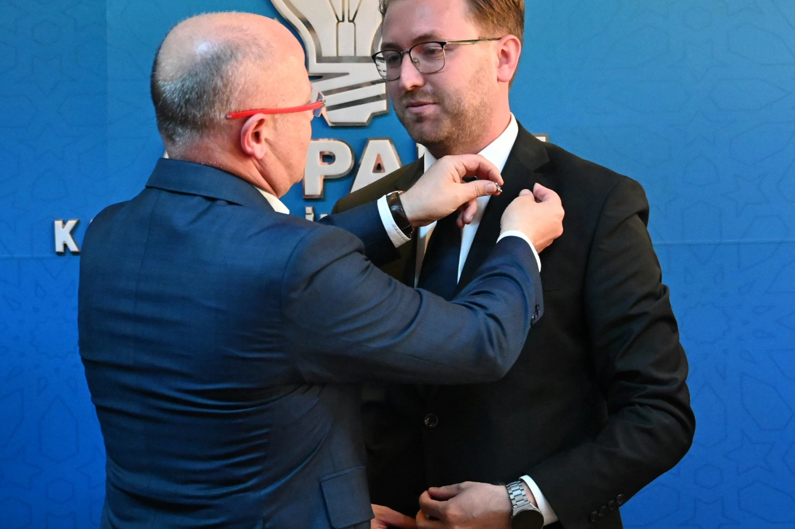 AK Partiye katılan meclis üyelerine rozetlerini İl Başkanı Davut Gürkan ve Bursa Milletvekili Refik Özen taktı. Rozet takma töreninde konuşan AK Parti İl Başkanı Davut Gürkan, Karacabey'in hizmete ihtiyacı olduğunu belirterek, "Bundan sonraki süreçte bizim artık mazeretimiz yok. Daha fazla gayret edeceğiz, daha fazla çalışacağız, daha fazla hizmet edeceğiz" dedi. AK Parti Bursa Milletvekili Refik Özen de; "Cumhurbaşkanımızın liderliğinde temelini attığımız ve hızla binasını yükselttiğimiz tam bağımsız Türkiye'yi inşa ediyoruz" dedi. AK Parti İl Başkanı Davut Gürkan, Bursa Milletvekili Refik Özen ve Karacabey Belediye Başkanı Fatih Karabatı'nın da katılımıyla gerçekleştirilen AK Parti Karacabey İlçe Yönetim Kurulu Toplantısı öncesi AK Parti ailesine yeni katılan 3 meclis üyesine parti rozetleri takıldı. Belediye Başkanı Fatih Karabatı'nın ardından partilerinden istifa edip, AK Parti ailesine katılan meclis üyeleri Ahmet Karakuş, Süleyman Yörür ve İlyas Aksoy’un rozetlerini İl Başkanı Gürkan ve Bursa Milletvekili Özen taktı.