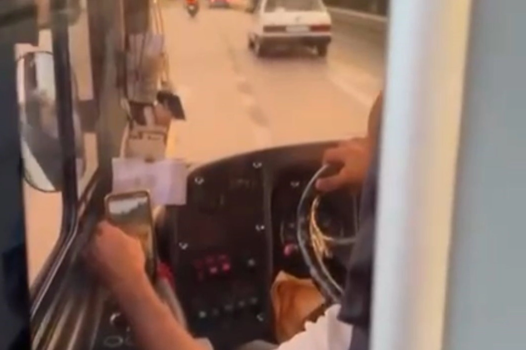 Yürekleri ağza getiren şoförün rahat hareketleri dikkat çekerken, yolcuların uyarılarına rağmen şoför videoyu izlemeye devam etti ve bu durum otobüste gergin anlar yaşanmasına neden oldu.