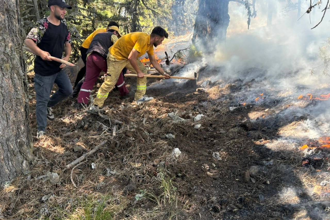 2 helikopter, 8 arazöz, 4 su tankeri, 3 ilk müdahale aracı, 1 dozer ve 56 personel ile yapılan müdahale sonucu, alevler kontrol altına alındı.