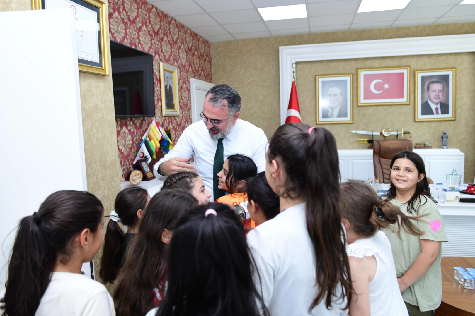 Makamda gerçekleşen ziyarette Başkan Ferhat Erol, çocuklarla birebir ilgilenerek onlarla uzun uzun sohbet etti. Neşeli kahkahaların eşlik ettiği buluşmada kız çocukları hem hayallerini hem de günlük yaşamlarına dair ilginç anekdotları paylaşarak gönüllerince bir gün yaşadı. Belediye personeli de küçük misafirlerin enerjisinden nasibini aldı, binada adeta bayram havası esti.
