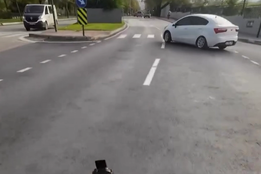 Bursa'da seyir halindeki bir motosikletli, kırmızı ışıkta geçerek önüne aniden manevra yapan otomobile tepki gösterdi.