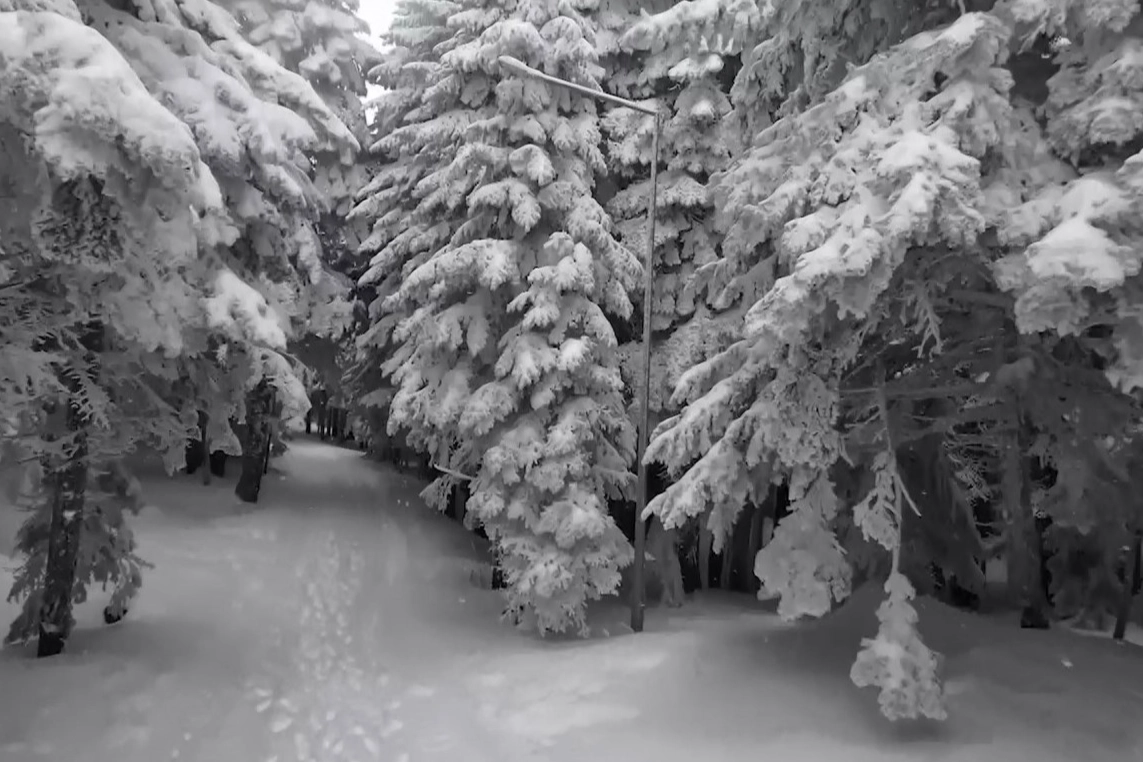 Doğa Koruma ve Milli Parklar 2. Bölge Müdürlüğü tarafından dron ile kayda alınan görüntüler, Uludağ'ın beyaza bürünmüş ağaçlar arasındaki güzelliklerini gözler önüne serdi.