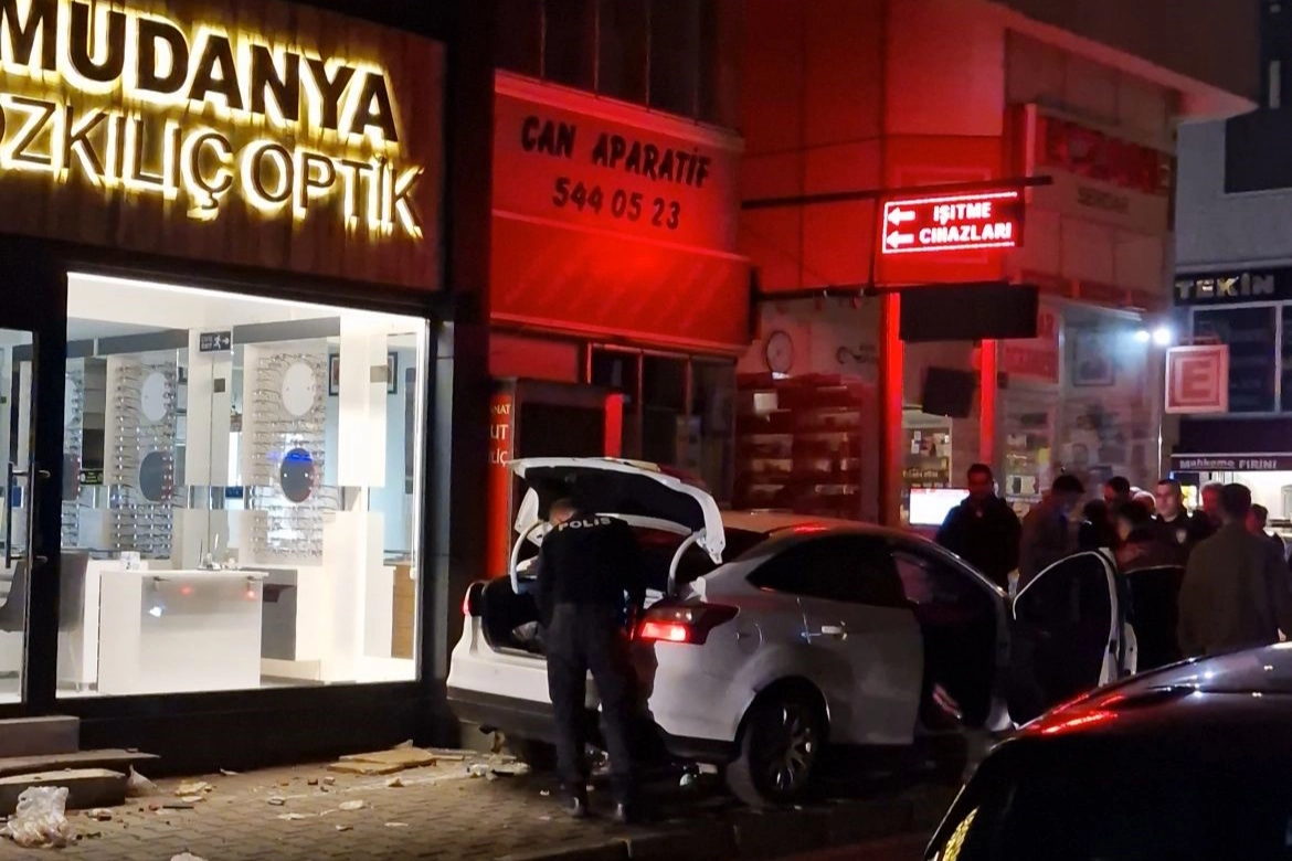 Metrelerce ilerleyen araç bir eczaneye çarptıktan sonra durabildi. Kaza akşam saatlerinde Mudanya ilçesinde meydana geldi. İddiaya göre, direksiyon başında epilepsi krizi geçiren sürücünün kontrolünden çıkan araç önce balıkçı tezgahına, ardından bir otomobile çarptı, daha sonra yol kenarındaki tabelayı devirip eczaneye çarptı.