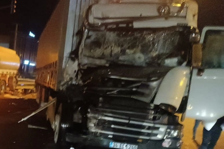 Bursa'nın İnegöl ilçesinde sürücüsünün kontrolünden çıkan tır, ışıklı kavşakta kırmızı ışıkta bekleyen tankere çarptı.