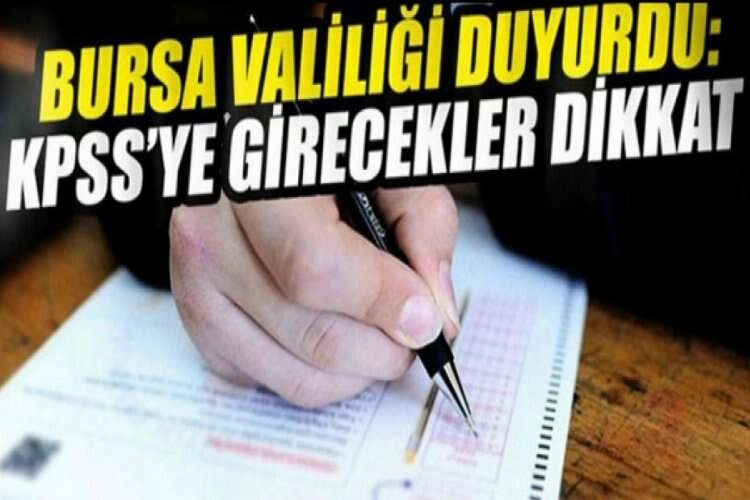 Bursa Valiliği'nden yapılan açıklamada "2022 Kamu Personeli Seçme Sınavına (2022-KPSS) katılacak adayların, T.C. kimlik kartı başvuru işlemleri için 18 Eylül 2022 Pazar günü 07:00-14:30 saatleri arasında ilimiz Nilüfer, Osmangazi ve Yıldırım İlçe Nüfus Müdürlükleri, 24 Eylül 2022 Cumartesi günü 07:00-14:30 saatleri ve 25 Eylül 2022 Pazar günü 07:00-10:00 saatleri arasında da ilimiz Nilüfer İlçe Nüfus Müdürlüğü açık bulundurulacaktır. Kamuoyuna saygıyla duyurulur." ifadelerine yer verildi.