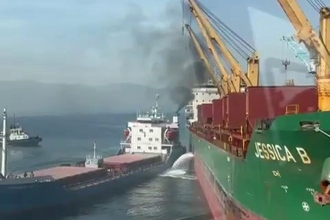 Bursa'nın Gemlik ilçesinde limandan çıkan gemi, başka bir gemiye çarparak yoluna devam etti. O anlar saniye saniye vatandaş kamerasına yansıdı.