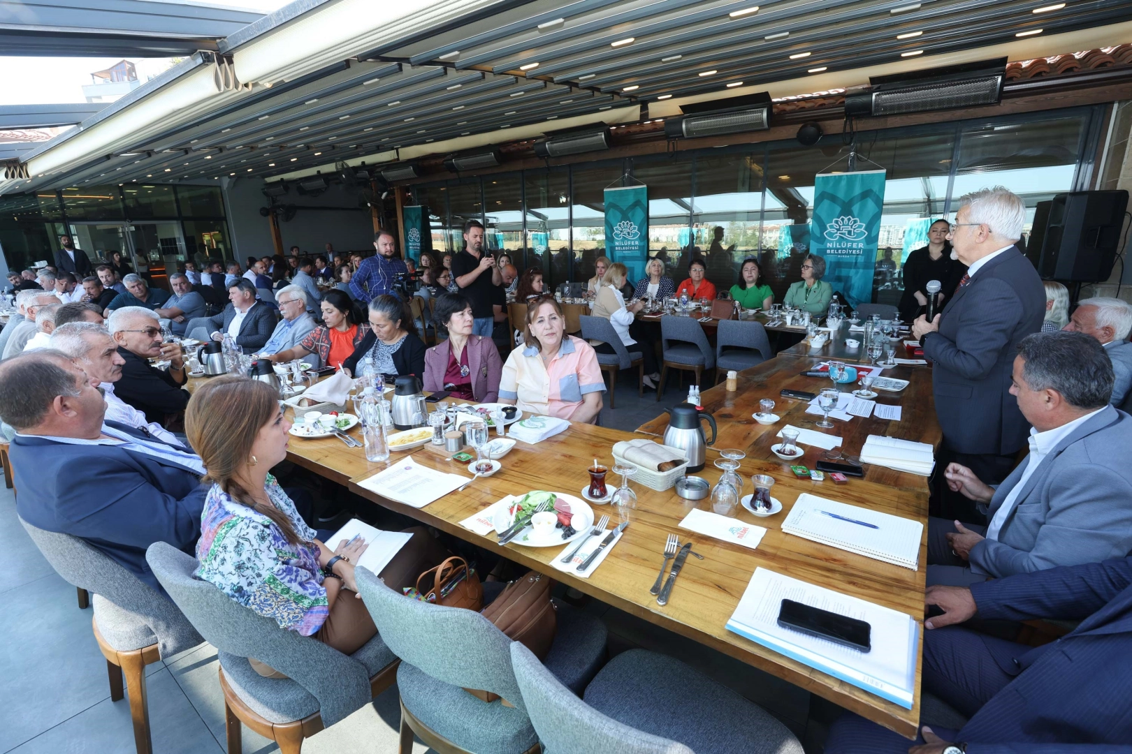 Nilüfer’in mahallelerini tek tek ziyaret ederek sorunları yerinde inceleyen Nilüfer Belediye Başkanı Turgay Erdem, periyodik olarak düzenlediği buluşmalarla da muhtarların mahalleleriyle ilgili sorunlarını dinliyor. Mahalle muhtarları, başkan yardımcıları ve müdürlerin de tam kadro yer aldığı toplantılarda muhtarların mahallelerine yönelik ilettiği sorunlara çözüm önerileri üretilerek, eksiklikler kısa süre içinde gideriliyor. Nilüfer Belediye Başkanı Turgay Erdem, muhtarlarla ilgili buluşmasına bir yenisini daha ekledi.