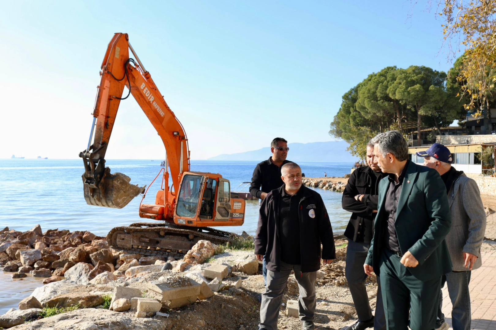 Sahile girişte iş makinelerinin ve belediye ekiplerinin hummalı bir çalışma yürüttüğü dikkat çekerken, Deviren ve Uzunkaya yapılan düzenlemelerle ilgili teknik personelden bilgiler aldı. Çalışmaların, sahilin daha düzenli, erişilebilir ve kullanışlı bir yapıya kavuşması amacıyla planlandığı aktarıldı.