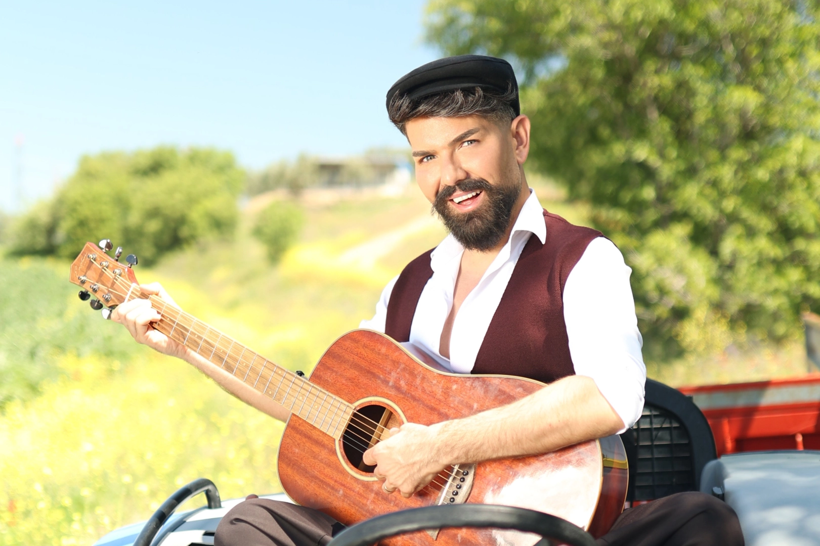 Yeni şarkısının klibinde köy ağası olan Mehmet Çevik traktör kullanıp tarla sürdü.