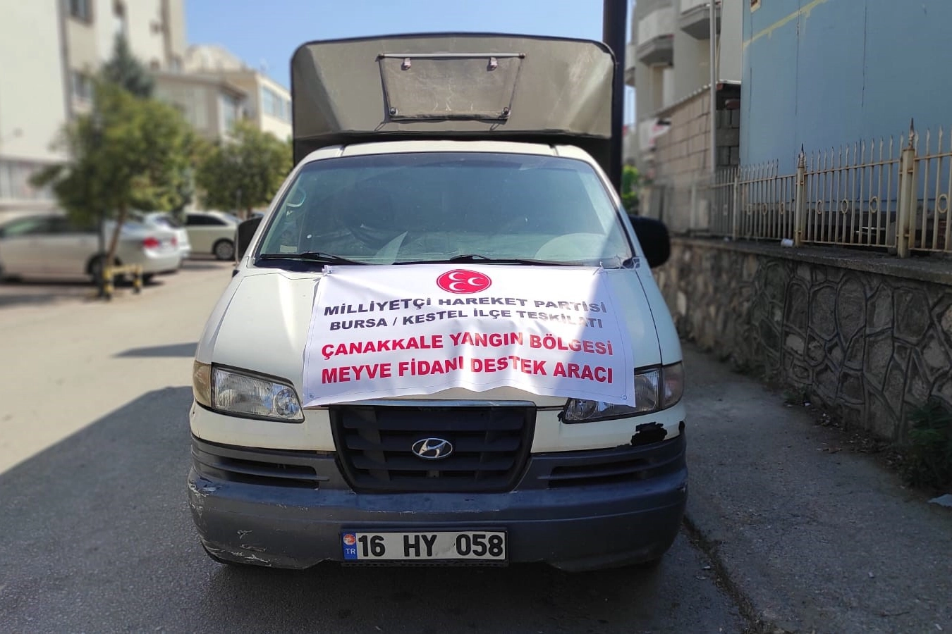 Türkiye'de adından çokça söz ettiren ilçemiz bunun yanında süs bitkileri için de çok önemli bir merkezdir. Bizde Milliyetçi Hareket Partisi Kestel İlçe başkanlığı olarak, nacizane yaraların bir an önce sarılması için böyle bir proje başlattık. 500 fidan ile bugün destek veriyoruz. İnşallah bugün itibarıyla Çanakkale'nin Belen ilçesine muhtarlıklara ve kooperatif başkanlarına teslim edilmek üzere meyve fidanlarımızı bölgeye sevk edeceğiz" ifadelerini kullandı.