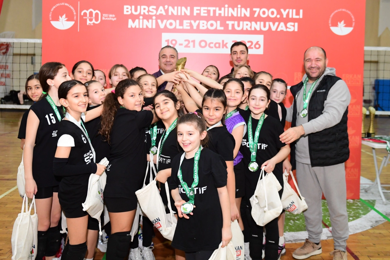 Spora yaptığı sürdürülebilir yatırımlar ve her yaştan bireyi sporla buluşturan projeleriyle, sağlıklı ve dinamik bir toplumun inşasında önemli bir rol üstlenen Osmangazi Belediyesi, Bursa’nın fethinin 700. yılı kutlamaları kapsamında Mini Voleybol Turnuvası düzenledi. Dikkaldırım Spor Salonu’nda gerçekleşen ve 3 gün süren turnuvada toplamda 24 takım, 240 sporcu ile kupa mücadelesi verdi. Heyecan dolu anlara sahne olan turnuvaya, sporcuların centilmence mücadelesi ve tribünleri dolduran ailelerin coşkusu ayrı bir renk kattı. Turnuva sonunda Aktif Nesil Spor Kulübü, sergilediği başarılı performans ile şampiyonluğa ulaştı. Mini Voleybol Turnuvası’nda ikinci Bursa Uludağ Üniversitesi Spor Kulübü, üçüncü Bursa Sportif Spor Kulübü ve dördüncü de Aktif Nesil Spor Kulübü’nün bir diğer takımı oldu.