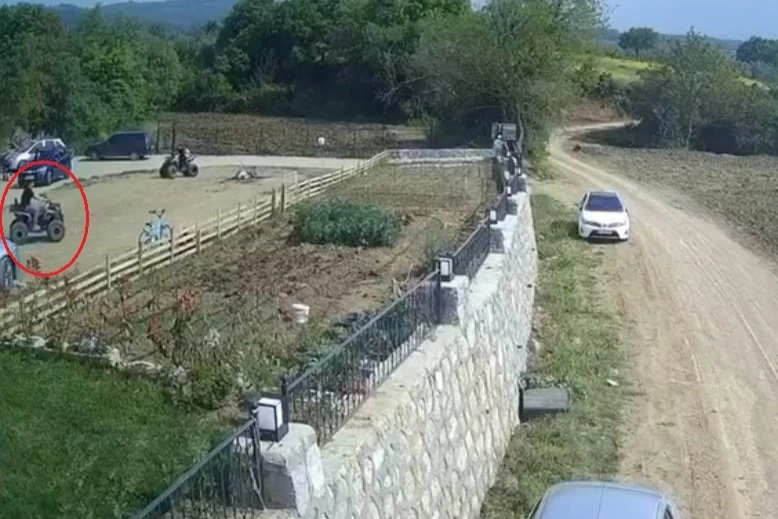 Bir süre sonra sürücüsünün idaresinden çıkan ATV, bahçede bulunan çitlere çarparak durabildi. Yaşanan kaza ise, saniye saniye güvenlik kamerası ile kaydedildi.
