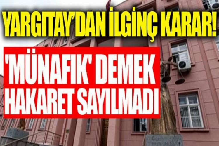 Tartıştığı kişiye, 'Senden hoca değil münafık bile olmaz' diyen kişi hayatının şokunu yaşadı. Hakarete maruz kaldığını öne süren kişi, 'münafık' kelimesini kullanan genci mahkemeye şikayet etti. Asliye Ceza Mahkemesi, sanığı mahkum etti. Karar kesinleşti. Yargıtay Cumhuriyet Başsavcılığı kanun yararına bozma talebinde bulundu. Devreye giren Yargıtay 4. Ceza Dairesi, 'Münafık' kelimesini hakaret saymadı. Kararda şu ifadelere yer verildi: "Hakaret fiillerinin cezalandırılmasıyla korunan hukukî değer, kişilerin onur, şeref ve saygınlığı olup, bu suçun oluşabilmesi için, davranışın kişiyi küçük düşürmeye matuf olarak gerçekleşmesi gerekmektedir. Bir hareketin tahkir edici olup olmadığı bazı durumlarda nispi olup, zamana, yere ve duruma göre değişebilmektedir. Kişilere yönelik her türlü ağır eleştiri veya rahatsız edici sözlerin hakaret suçu bağlamında değerlendirilmemesi, sözlerin açıkça, onur şeref, ve itibarı rencide edebilecek nitelikte somut bir fiil veya olgu isnadını veya sövme fiilini oluşturması gerekmektedir. İncelenen somut olayda, sanığın katılana hitaben söylediği iddianamede tanımlanıp, mahkemenin de kabul ettiği kaba hitap tarzındaki 'senden hoca değil münafık bile olamaz' sözünün, mağdurun onur, şeref ve saygınlığını rencide edici boyutta olmaması nedeniyle hakaret suçunun unsurlarının oluşmadığından, sanık hakkında beraat kararı verilmesi gerekirken, mahkumiyetine karar verilmesi hukuka aykırıdır. Yargıtay Cumhuriyet Başsavcılığı'nın kanun yararına bozma isteği doğrultusunda düzenlediği tebliğnamedeki düşünce yerinde görüldüğünden 'hakaret' suçundan sanık hakkında kurulan Asliye Ceza Mahkemesi kararının bozulmasına, hükümdeki hukuka aykırılık sanığa verilen cezanın kaldırılmasını gerektirmekle, aynı Kanunun 4-D fıkrası gereğince, sanığın hakaret suçundan beraatine oy birliği ile karar verildi."