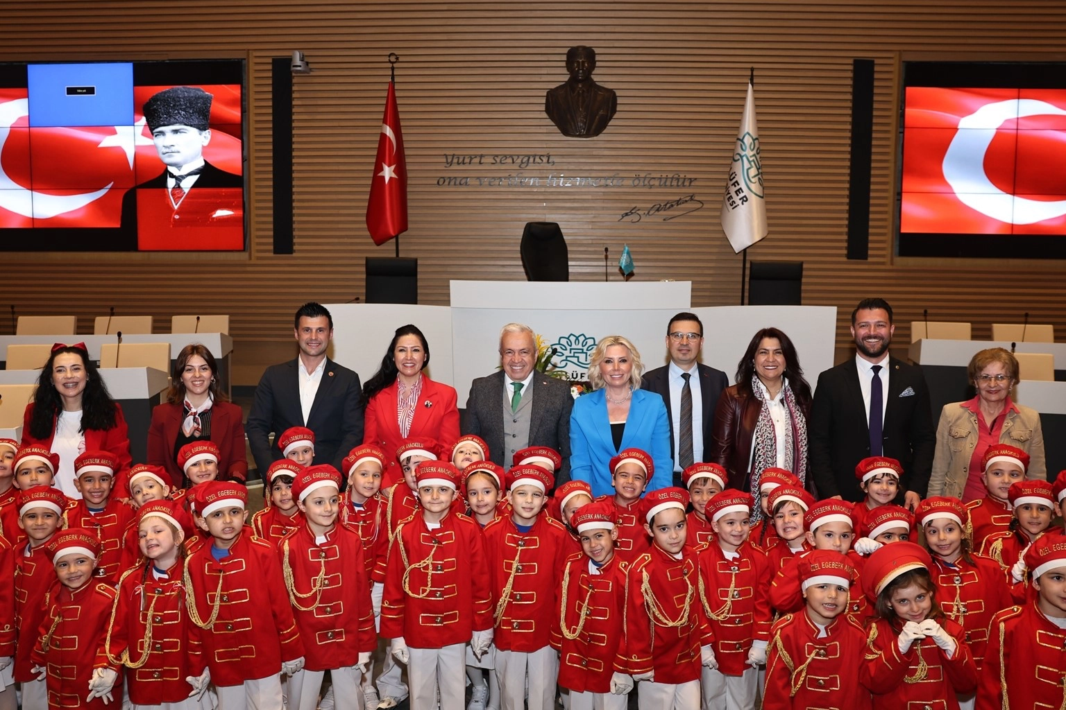 Anaokulu öğrencileri 23 Nisan Ulusal Egemenlik ve Çocuk Bayramı için hazırladıkları gösterileri, Nilüfer Belediye Başkanı Şadi Özdemir’i ziyaretlerinde sergiledi.