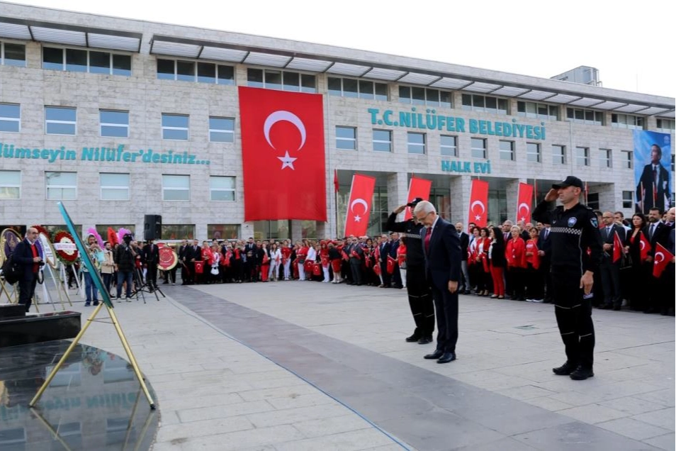 Cumhuriyet Bayramı 100. yılında Nilüfer’de görkemli törenlerle kutlanıyor. Günün ilk töreni Nilüfer Cumhuriyet Meydanı’ndaki Atatürk Anıtı’nda gerçekleştirildi. Nilüfer Belediye Başkanı Turgay Erdem, eşi Zeynep Terzioğlu Erdem, geçmiş dönem Nilüfer Belediye Başkanı ve Bursa Büyükşehir Belediye Başkan Adayı Mustafa Bozbey, CHP Nilüfer İlçe Başkanı Özgür Şahin, İYİ Parti Nilüfer İlçe Başkanı Levent Öncü, Bulgaristan Bursa Konsolosu Ticari Ateşesi Lyubomir Lyubenov,siyasi parti ve sivil toplum örgütlerinin temsilcileri ile çok sayıda vatandaş katıldı. Çelenklerin Atatürk Anıtı’na sunulmasının ardından saygı duruşunda bulunuldu ve İstiklal Marşı okundu. Bütün Türkiye’nin Cumhuriyet’in 100. yılını kutlamanın gururunu yaşadığını ifade eden Nilüfer Belediye Başkanı Turgay Erdem, “Bugün burada kutsal emaneti, ikinci yüzyıla taşımanın mutluluğunu paylaşıyoruz. 100 yıl önce karanlığın ortasında bir güneş gibi doğmuş, en büyük devrimlerle bu ülkede aydınlık bir çağı başlatmış olan Cumhuriyet’in 100 yıllık tarihi eşiği atlamış olmasının gururunu paylaşıyoruz” diye konuştu. Cumhuriyet’in bu 100 yılda pek çok badireler atlattığını ifade eden Başkan Erdem, ama her şeye rağmen ayakta kaldığını ve ayakta kalmaya da devam edeceğini söyledi. Başkan Erdem konuşmasına şöyle devam etti: “Görüyorsunuz yaşadığımız dönem de çok sancılı. Bir yanımızda vicdanını, aklını kaybetmiş bir savaş var. Masum insanlar, çocuklar ölüyor. Vicdanımızı kanatan bu savaşı lanetliyoruz. Öte yanda memleketin içinde olduğu gerçekler, gelecek endişelerimiz var. Laiklik gibi Cumhuriyet’in en temel dayanakları endişe verici girişimlerle yara alıyor. Bugün, okullarda imamların derse girmesinden, anaokullarına mescit zorunluluğundan bahsediyoruz. Halen kadın-erkek eşitliğini münazara ediyoruz. Oysa biz bu konuları 100 yıl önce çözmüştük. Yani geldiğimiz noktada bugün Cumhuriyet kazanımlarına daha çok sahip çıkmamız gerekiyor.” Atatürk’ün 10. Yıl Nutku’ndaki “Az zamanda büyük işler yaptık. Ama bunlar asla yeterli değil. Yurdumuzu dünyanın en medeni memleketleri seviyesine çıkaracağız” sözlerine dikkat çeken Başkan Erdem bu hedefe ulaşılması için çok çalışmak gerektiğinin de altını çizdi. Başkan Erdem, “Cumhuriyet değerlerine inanan herkes omuz omuza bu hedefe yürümeli. Ezilen tüm dünya halklarına örnek olan Cumhuriyet, inanıyoruz ki yeni neslin omuzları üzerinde sonsuza dek yaşayacaktır. Tarihin en büyük devrimcisi Atatürk’ün, ‘Yurtta sulh, dünyada sulh’ sözünün altını çizerek, ülkemiz için ve tüm dünya halkları için savaştan uzak, barış ve huzur dolu bir gelecek diliyorum” sözleriyle konuşmasını tamamladı.