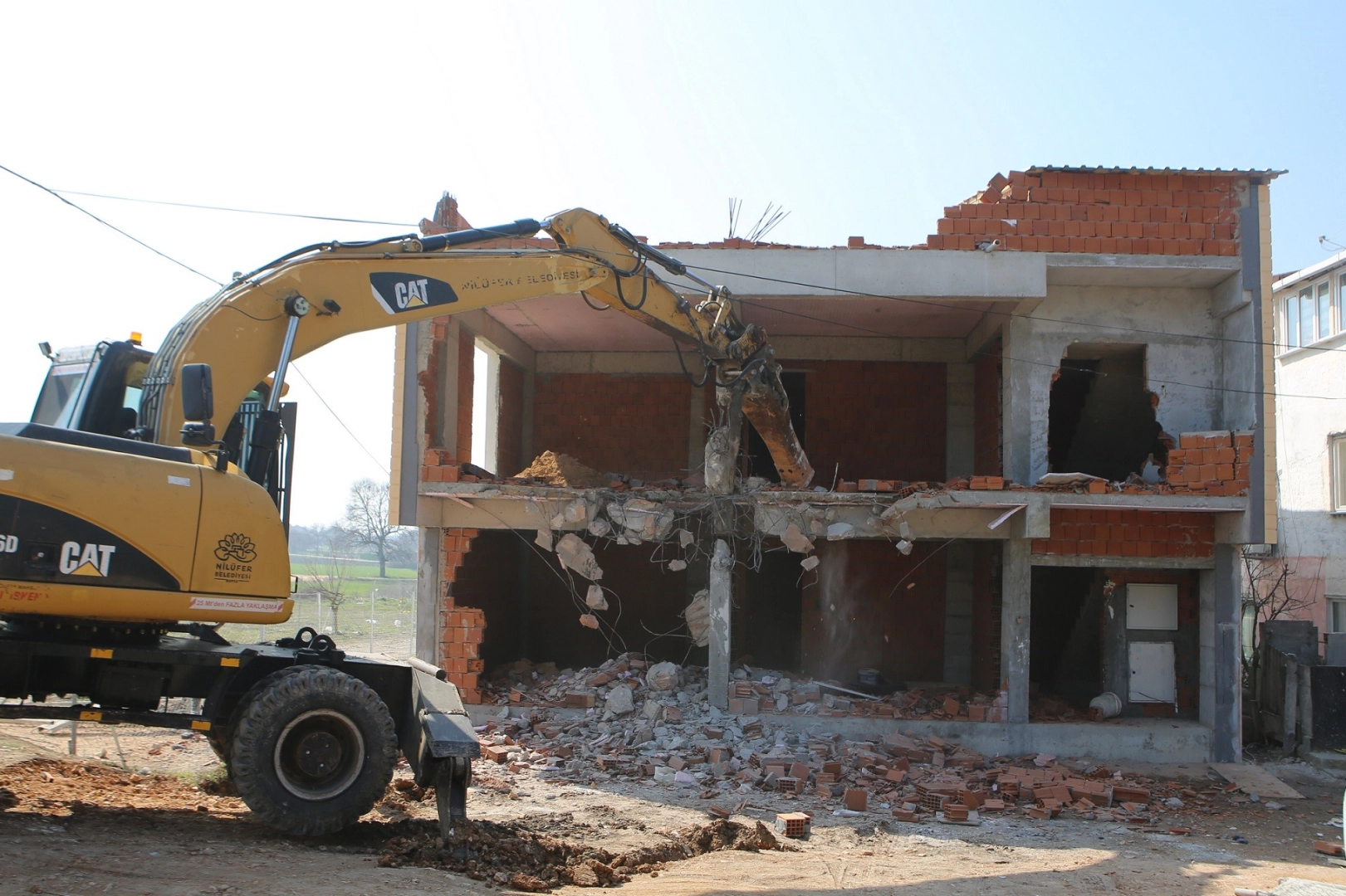 Nilüfer Belediyesi yıkım ekipleri, çevik kuvvet ve zabıta ekiplerinin güvenlik önlemleri altında, 180 metrekarelik ruhsatsız iki katlı kaçak binayı yerle bir etti. Yapı tamamen kullanılamaz hale getirildi.