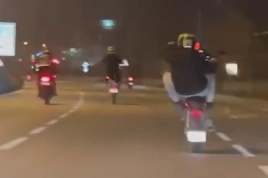 Tek tekerlek üzerinde ilerleyerek kendi canlarını tehlikeye atan motosiklet sürücüleri, saniye saniye amatör kamera ile kaydedildi.