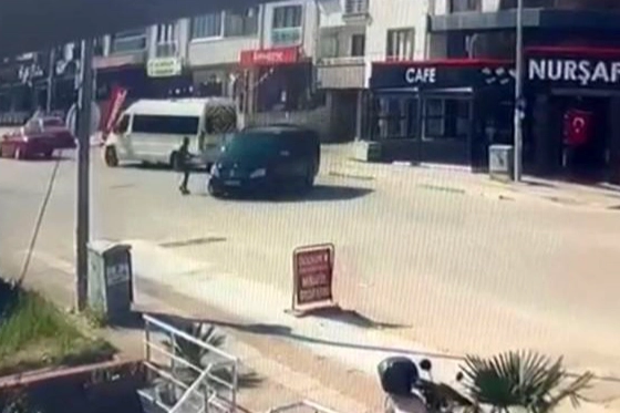 Park halindeki ve seyir halindeki araçlarla kazayı kıl payı atlatan minibüs park halindeki yerine tekrar gelirken, o ilginç anlarda sürücü ise canı pahasına mücadele verdi. Herkesi şaşkına uğratan o görüntü bir iş yerine ait güvenlik kamerasına yansıdı.