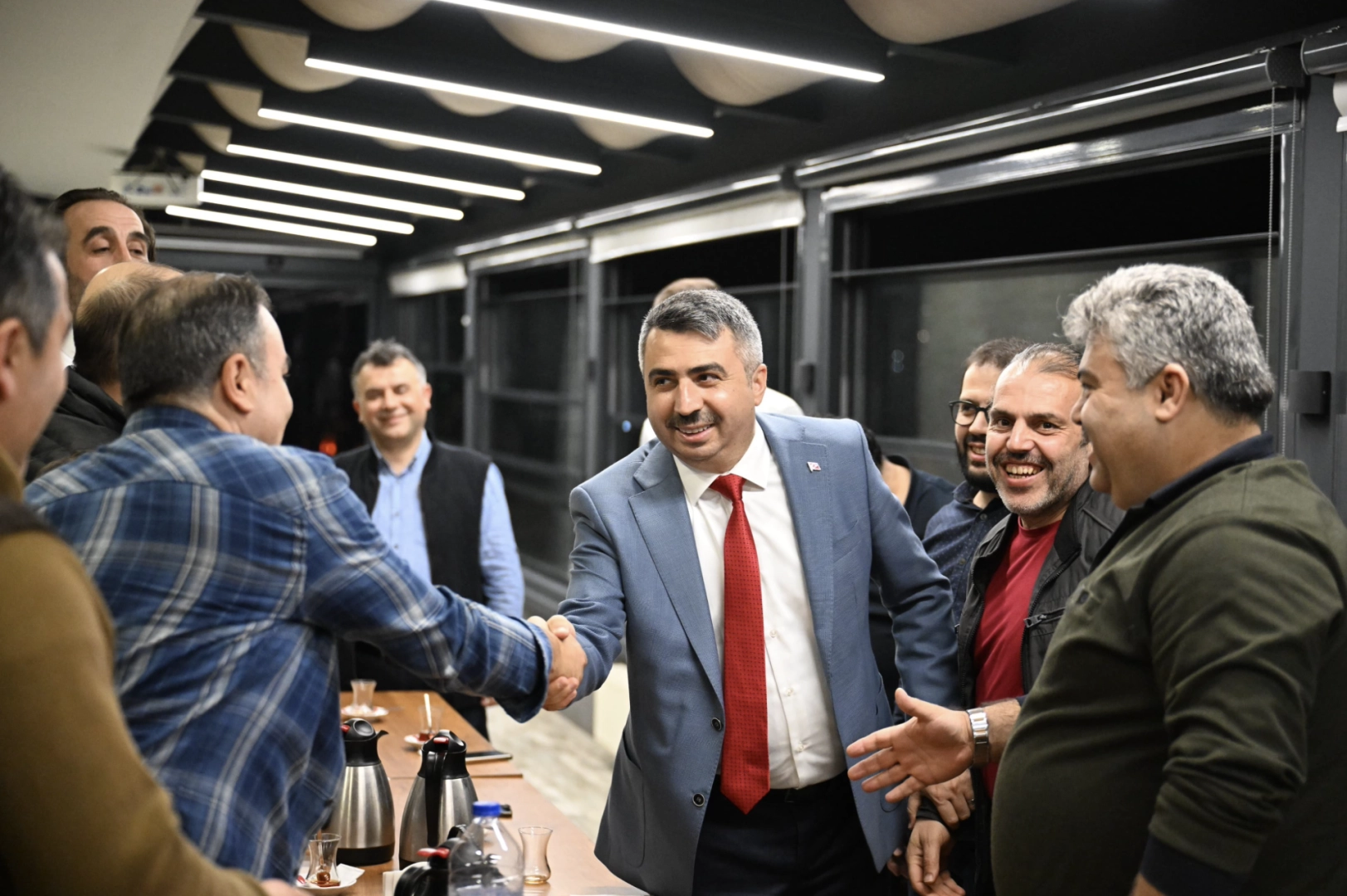 Başkan Yılmaz, iftar sonrası yapılan sohbetin keyfini çıkararak, ''İftar sonrası çaylar demli, muhabbet koyu. Bir selamla gönüllere dokunmak, muhabbetle yüzlerde tebessüm olmak...'' diyerek, samimi sohbetlere katıldı.