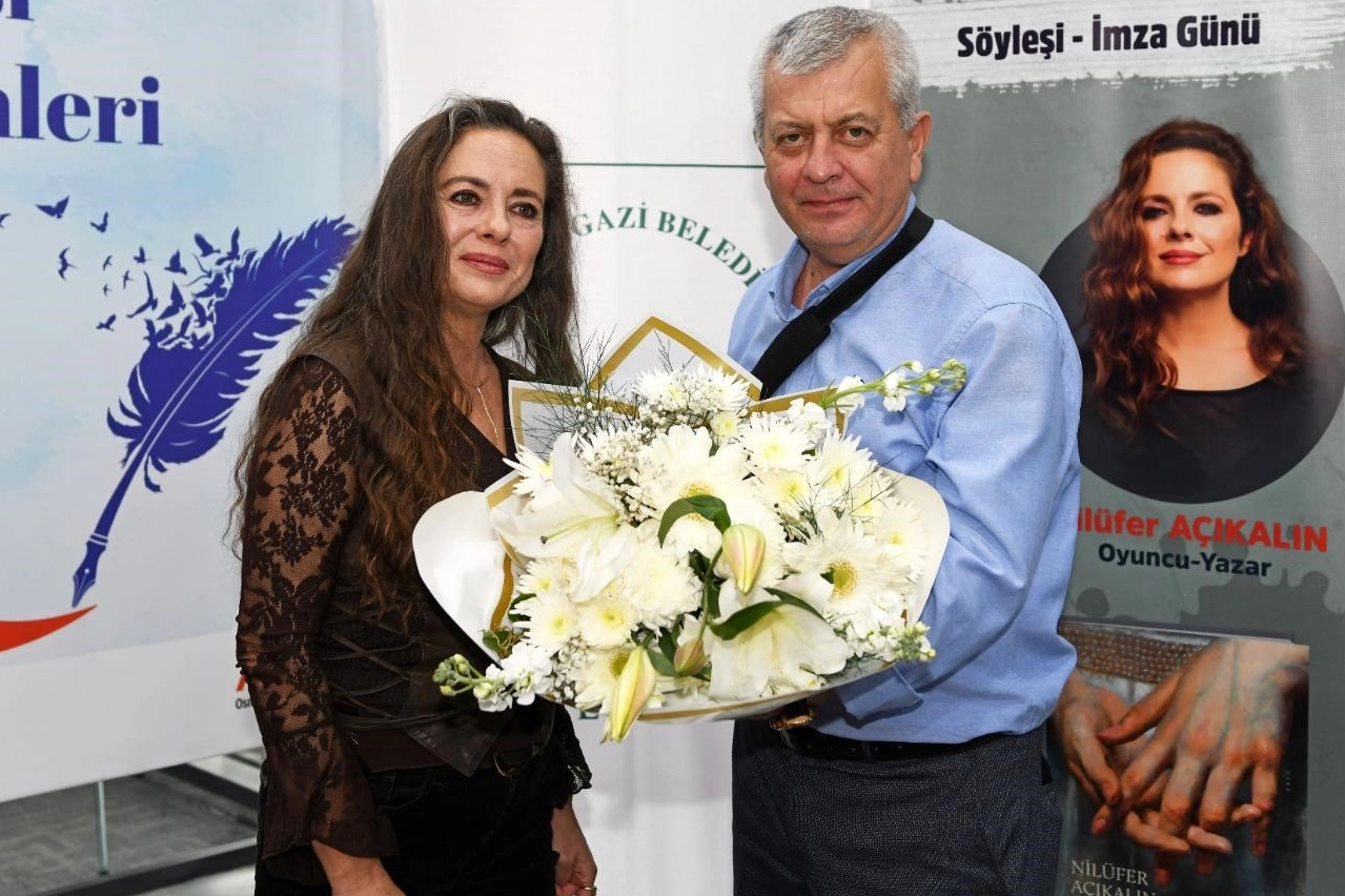 Program sonunda ödüllü oyuncu ve yazar Nilüfer Açıkalın, kitaplarını Osmangazili edebiyatseverler için imzaladı. Programa katılan Osmangazi Belediye Başkan Yardımcısı Mutlu Esendemir, yazar Açıkalın’a teşekkür çiçeği takdim etti.