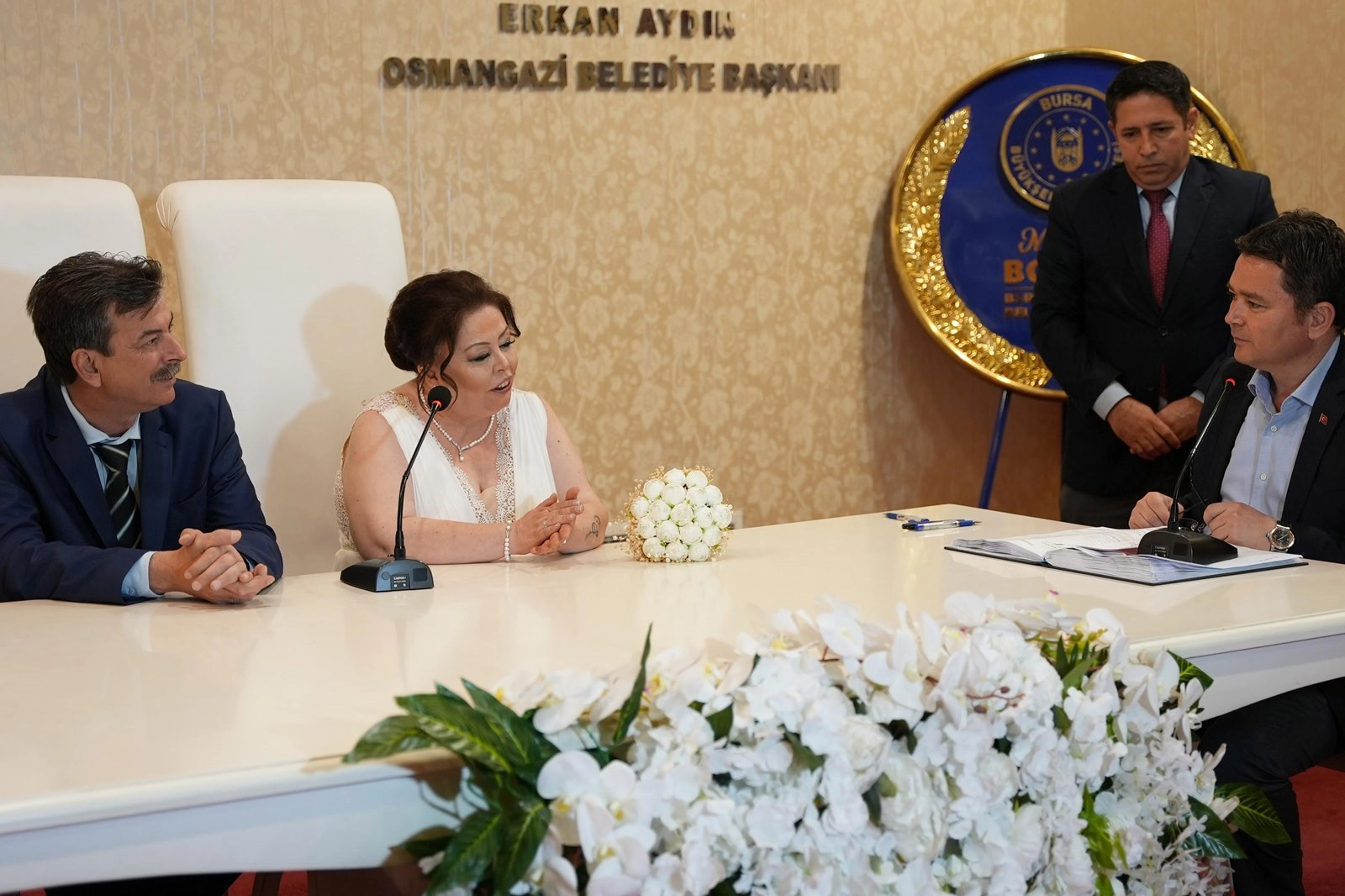 Yıl içerisinde kıydığı nikahlarla çiftlerin mutluluklarına ortak olan Osmangazi Belediye Başkanı Erkan Aydın, “2024 Yılı içerisinde belediyemiz aracılığıyla gerçekleştirilen nikah merasimleri ile dünya evine giren tüm çiftlerimize mutluluklar diliyorum. İnşallah 2025 yılında da nice mutlu birlikteliklere ve coşkulu merasimlere şahitlik ederiz” diye konuştu.