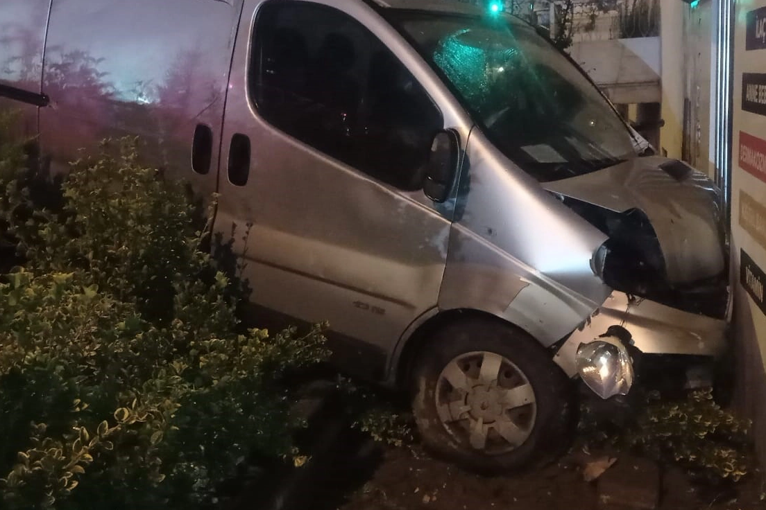 Bursa'da otomobille çarpışan hafif ticari araç yoldan çıkarak bir eczanenin bahçesine daldı.