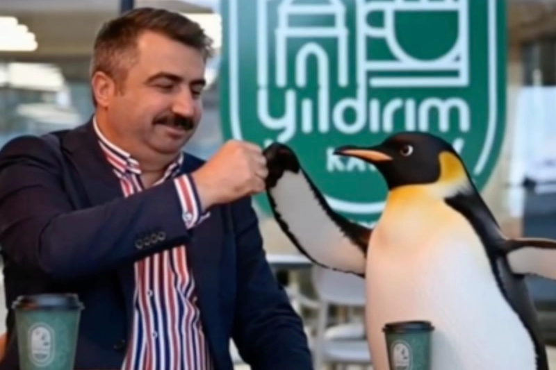 Bursa'nın Yıldırım Belediyesi de "Nereye gittiğini merak edenler olmuş" ifadesini kullanarak görüntü paylaştı. Görüntüde belediyenin tesislerine ve Belediye Başkanı Oktay Yılmaz ile yan yana penguene yer verildi.
