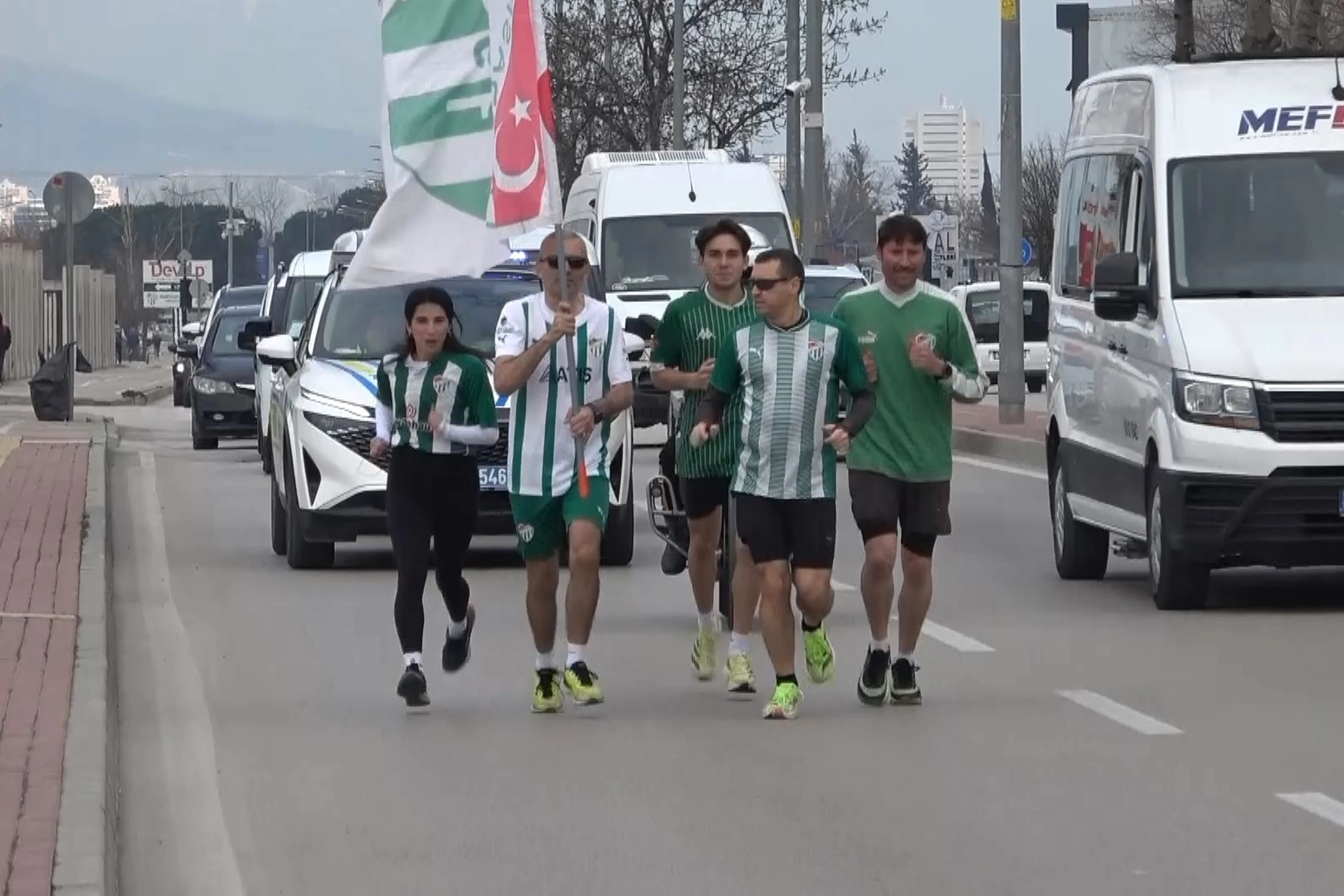 Maraton koşucusu Yasin Avcı ve 4 sporcu, ‘Sevgiliye Koşuyoruz’ sloganıyla Atatürk Spor Kompleksi Matlı Stadyumu önünden Bursaspor İbrahim Yazıcı Özlüce Tesisleri’ne kadar yaklaşık 8 kilometre koştu. 4 metrelik Bursaspor bayrağı ile koşan Yasin Avcı ve 4 sporcuya polis ekibi de eşlik etti. Avcı ile arkadaşlarına yoldaki sürücüler de el sallayarak ve korna çalarak destek verdi.