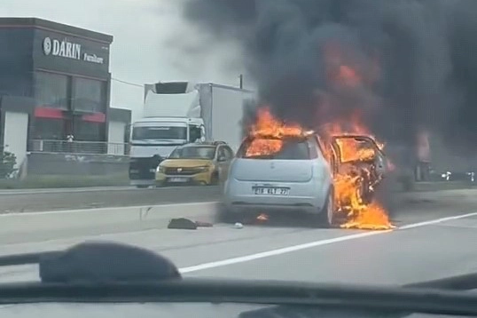 Bursa'nın İnegöl ilçesinde seyir halindeki otomobil alev alev yandı.