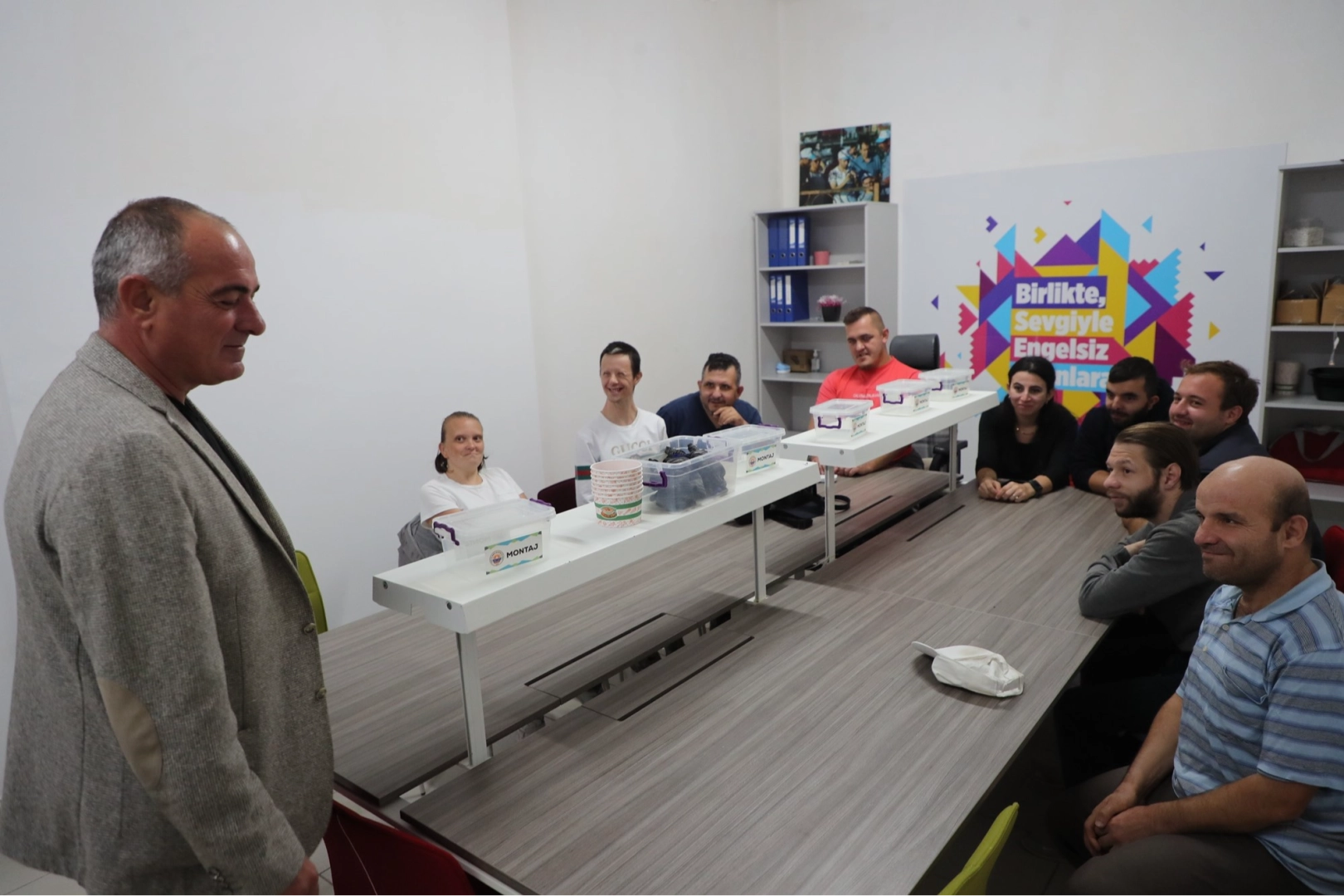 BAŞKAN SERTASLAN, “ÖĞRENCİLERİMİZLE GURUR DUYUYORUZ” Gemlik Belediye Başkanı Mehmet Uğur Sertaslan, “Engelsiz Montaj Atölyemizde, şu anda 14 gencimiz çalışıyor. Bu gençlerimiz yaptıkları basit bir uygulamayla otomobil parçasını birleştirerek iş hayatına adapte olurken, kendi ekonomilerine katkı sağlıyor. Bugün gururla söylemek istiyorum ki özel bireylerimizin atölyemizde ürettiği parçalar fabrikada kontrol edildiğinde sıfır hata tespit edildiğini öğrendik ve gurur duyduk. Gemlik Belediyesi olarak engelli bireylerimizin hayatını kolaylaştırmaya devam edecek ve bu konuda çalışmalarımızı aralıksız sürdüreceğiz. Öğrencilerimizle gurur duyuyorum.” dedi.