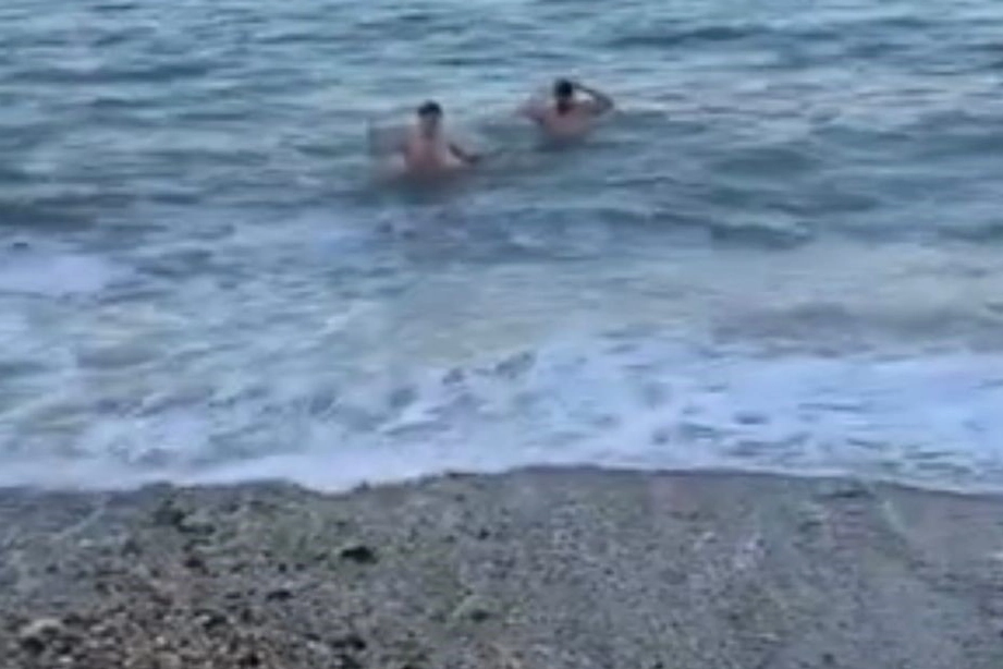 Kar yağışının sahil kesimlerinde de etkisini göstermesiyle birlikte, deniz kenarına gelen bir grup, soğuğa aldırış etmeden suya girdi. Karla kaplı sahilde mayo ile denize giren vatandaşlar, o anları cep telefonlarıyla kayda aldı.